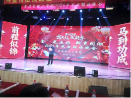 为迎接2026年元旦佳节,丰富校园文化生活,凝聚学院发展合力,食品与化工学院于12月26日晚在诚信礼堂成功举办元旦联欢晚会。学院党总支副书记王跃强、专职组织员王永刚、副院长翟新贵等领导班子成员与全院师生代表约500人共同观看演出,喜迎新年。鹤壁市药品检验中心主任王曹宇、副主任耿冶飞,中检集团(鹤壁)检验认证有限公司经理陈岩岩,河南省鹤城迎春花研究院有限公司总经理张志华,鹤壁佰穗肉牛有限公司总经理僧鑫新作为嘉宾应邀出席。