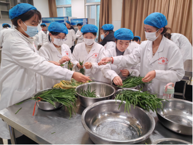 活动筹备阶段,同学们分工细致、协作高效。食材组严格核查食材品质,精心调配鲜肉大葱、韭菜鸡蛋等多种馅料,兼顾不同口味偏好;后勤组全面清洗消毒操作台、刀具等器具,科学划分食材区、制作区、蒸煮区等功能区域,为活动的顺利开展筑牢保障。