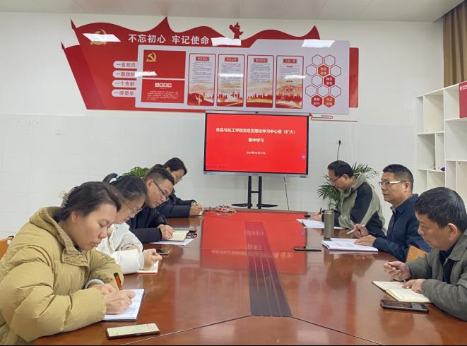 10月27日,食品与化工学院党总支召开理论学习中心组(扩大)会议,专题学习贯彻党的二十届四中全会精神。学院党总支委员及副科级以上干部参会,党总支副书记王跃强主持会议。