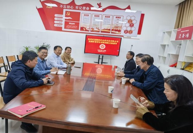 阮嗣林介绍了荆州市金童食品有限公司的发展历程、核心产品矩阵及技术升级需求,对学院的科研实力与人才培养质量给予高度认可。他表示,企业正处于产品迭代的关键期,希望依托学院的专家团队与科研平台,在功能性食品开发、生产工艺优化等方面开展实质性合作,破解技术瓶颈,助力企业提档升级,服务区域食品产业高质量发展。蒋明利则从项目落地的实操层面,提出了共建联合实验室、开展定向人才培养等具体合作路径建议。